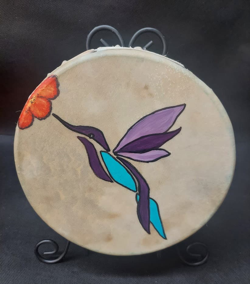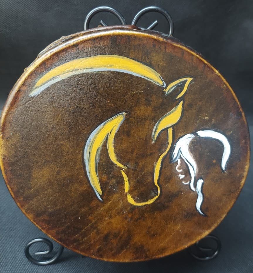 Painted Drums 12″ Goat“The Elements” 13″ Goat“Running Pony” 18″ Goat“Old Crow” – Sold 9″ Deer“Kitty” 9″ Deer“Deer Sign” 9″ Horse“My Pony” – Sold 9″ Goat“Hummingbird” 9″ Goat “Fish” 9″ Goat – Sold Share this: Share on X (Opens in new window) X Share on Facebook (Opens in new window) Facebook Like Loading...
