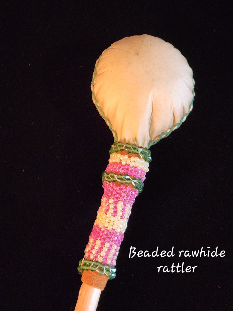 These rawhide shakers are Intention Tools. “Hope” “Energy” “Water” “Balance”